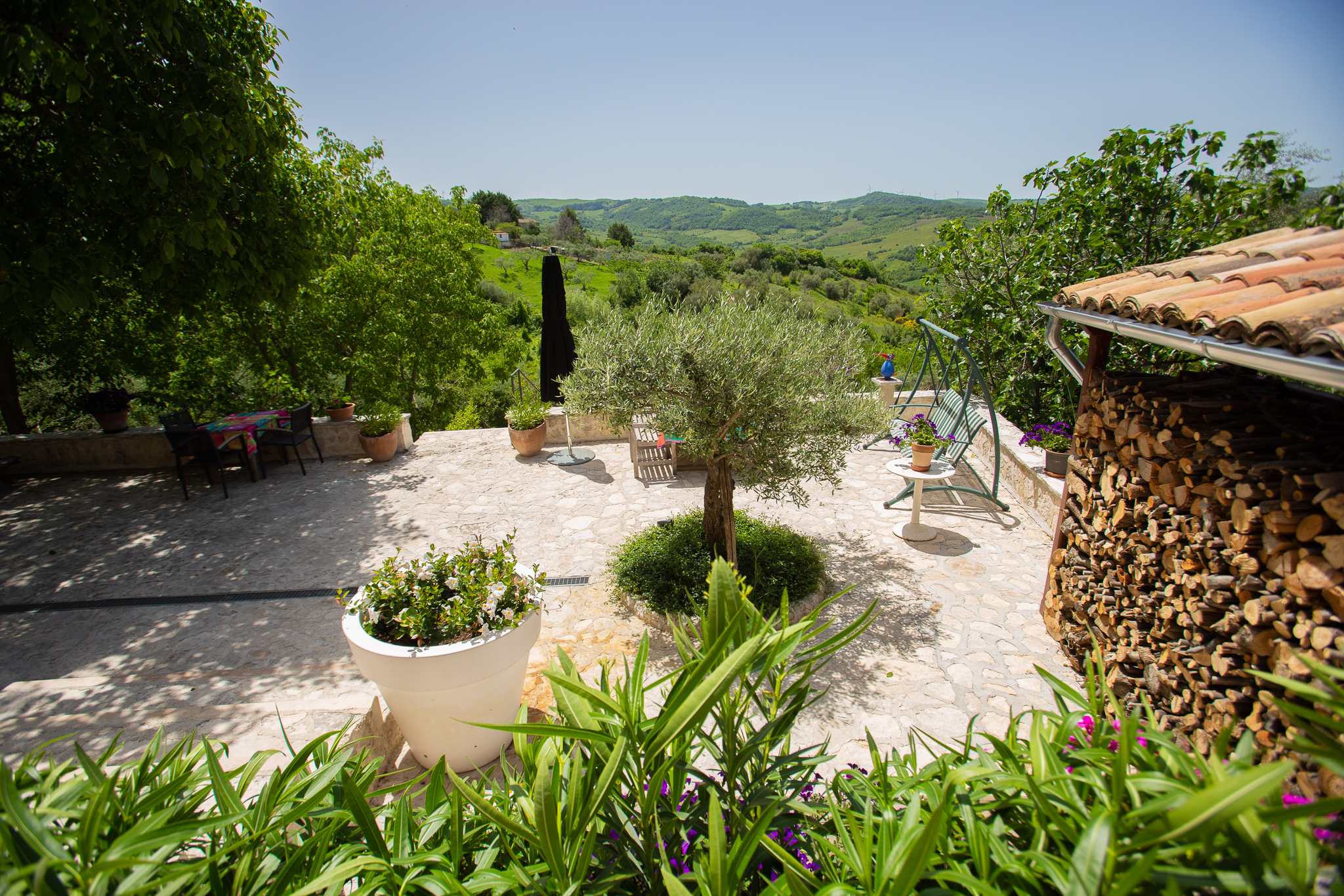 Het Bed & Breakfast Casa Cristina ligt aan het laatste straatje van het middeleeuwse dorp Ripabottoni. Hierdoor zijn de winkeltjes voor eerste levensbehoeften op loopafstand en is er de vrijheid van een tuin van 6000 m2. In de tuin staan oude olijfbomen, notenbomen,vijgen, appels, kersen etc. Er is ook een zwembad (6x9m) met een groot terras met ligbedden en een lounge-hoek onder de veranda met vaste BBQ en een panoramisch uitzicht over de heuvels van Molise. Dit uitzicht is ook te bewonderen van het terras bij het huis. Op dit terras staat een grote notenboom waaronder je in de zomer heerlijk in de schaduw kan zitten.